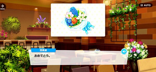 | —AH! Sorry, you're supposed to be my customers right now!! What sort of flowers are you looking for today? Perhaps an arrangement of backstage flowers…?[2] | |