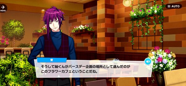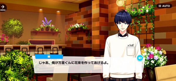 | —AH! Sorry, you're supposed to be my customers right now!! What sort of flowers are you looking for today? Perhaps an arrangement of backstage flowers…?[2] | |